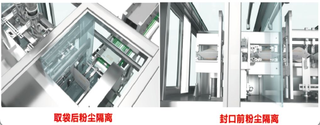 采用下潛充填,避免大量粉塵外溢,防止袋口粘粉影響封口。(該功能為我司獨有技術(shù))