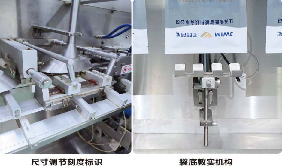 落料敦實機(jī)構(gòu):灌裝有效保證空氣排出,使物料有效充填袋底部,確保物料的裝袋率