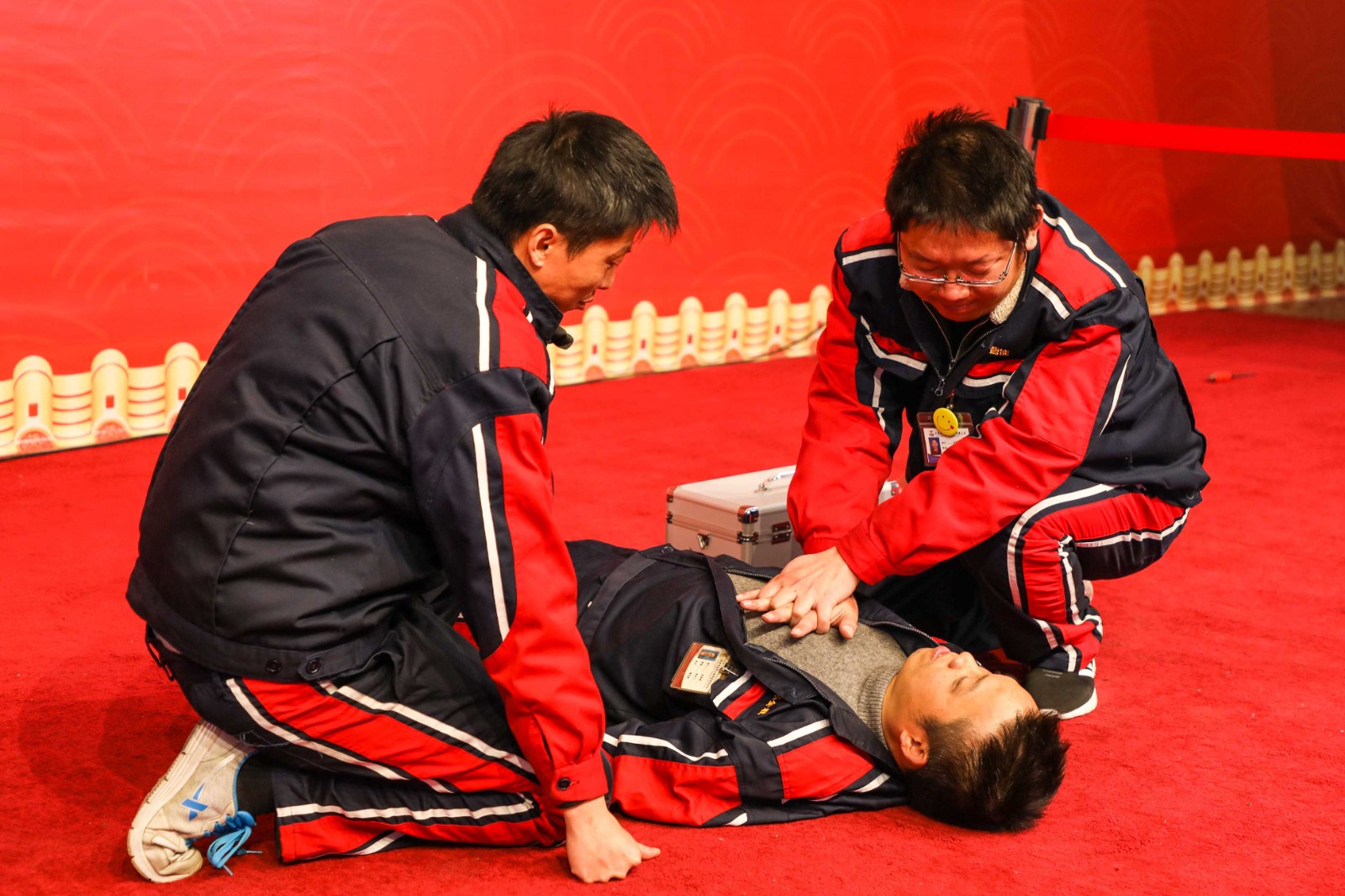 發(fā)現(xiàn)觸電人員時,應(yīng)該及時有絕緣物體挑離電源,部分人員進行撥打救助電話,通知安全部門,第二步檢查觸電人員是否有心跳脈搏,如果沒有先檢查是否口中有異物,進行心肺復(fù)蘇及人工呼吸。