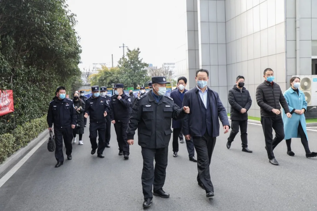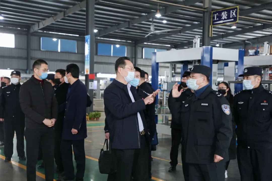 常州市公安局副局長(zhǎng)徐衛(wèi)東帶隊(duì),金壇區(qū)人民政府副區(qū)長(zhǎng)、常州市公安局金壇分局局長(zhǎng)王曉航陪同,認(rèn)真聽(tīng)取江蘇金旺智能科技有限公司董事長(zhǎng)房國(guó)榮針對(duì)企業(yè)疫情防控、技術(shù)研發(fā)、防疫物資供應(yīng)等情況匯報(bào),對(duì)企業(yè)細(xì)化疫情防控舉措、助力防疫物資供應(yīng)予以肯定。