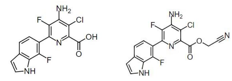 吲哚吡啶酸(indolauxipyr)為科迪華開發(fā)的一種吡啶甲酸類除草劑,開發(fā)代號為X-263和X12312263。科迪華計劃上市indolauxipyr的氰基甲酯產(chǎn)品吲哚吡啶酯(indolauxipyr-cyanomethyl),開發(fā)代號為XDE-521和XR-521。