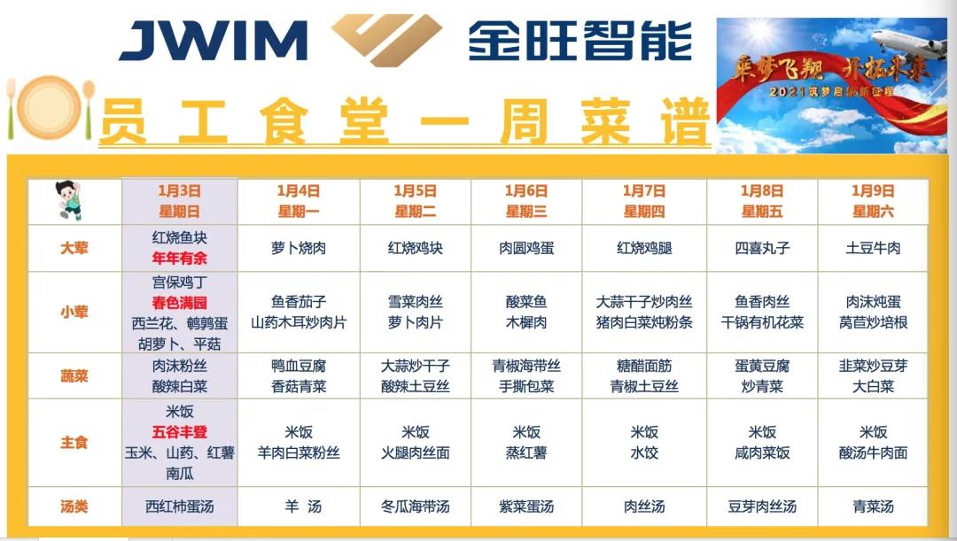 “今日菜單:土豆牛腩、青椒肉絲、紅燒蝦、魚香雞絲、西蘭花胡蘿卜、青菜香菇、西湖牛肉羹、番茄雞蛋湯,外加粗糧玉米山藥”……每天中午11點(diǎn)左右,金旺員工就會(huì)在微信群收到諸如此類的圖文并茂的菜譜,外加詼諧幽默的美食美言,如此這般食欲便悄然氤氳開來