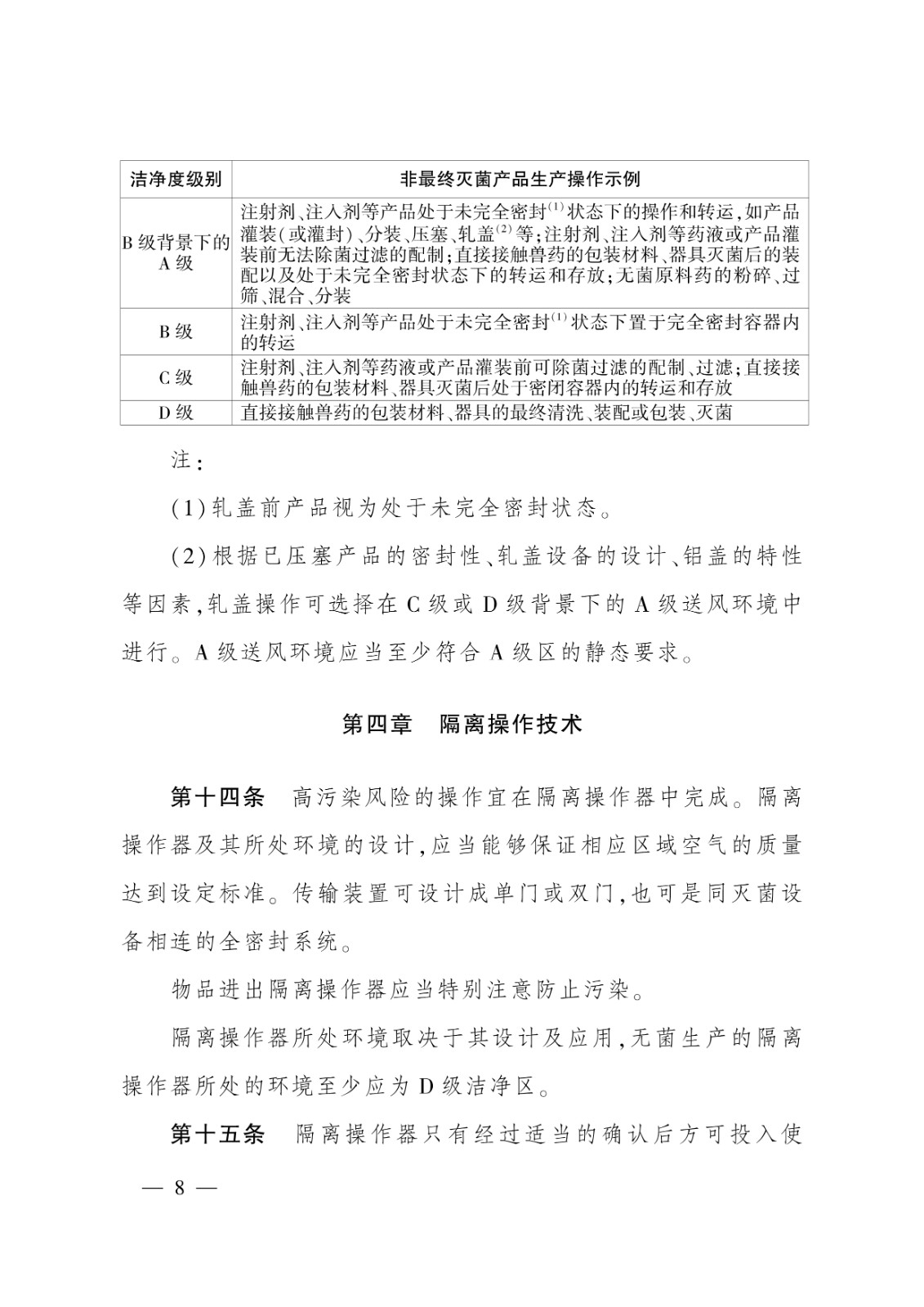 無菌獸藥生產(chǎn)質(zhì)量管理的特殊要求;2.非無菌獸藥生產(chǎn)質(zhì)量管理的特殊要求;3.獸用生物制品生產(chǎn)質(zhì)量管理的特殊要求;4.原料藥生產(chǎn)質(zhì)量管理的特殊要求;5.中藥制劑生產(chǎn)質(zhì)量管理的特殊要求