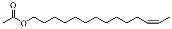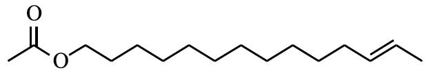 (1)反-12-十四碳烯乙酸酯,(Z)-tetra?dec-12-eny1 acetate,CAS登錄號:35153-21-0,分子式:C16H30O2,結(jié)構(gòu)式如下: