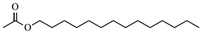 (2)十四醇乙酸酯,tetradecyl acetate,CAS登錄號:638-59-5,分子式:C16H32O2,結(jié)構(gòu)式如下: