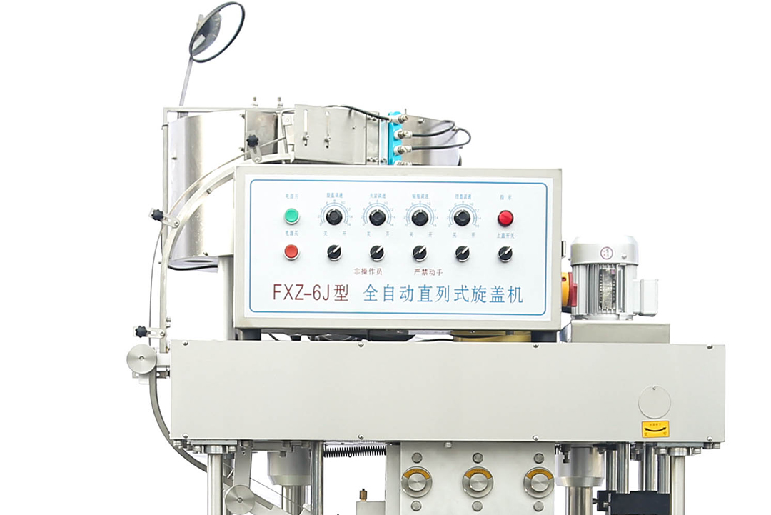 FXZ-6直列式旋蓋機(jī)結(jié)構(gòu)簡(jiǎn)單,操作方便,它采用搓蓋的方式調(diào)節(jié)各部位的配合來達(dá)到旋蓋的效果。由上蓋、理蓋、反蓋剔除、入滑蓋槽刮蓋、旋蓋、循環(huán)進(jìn)瓶的基本運(yùn)作順序進(jìn)行。