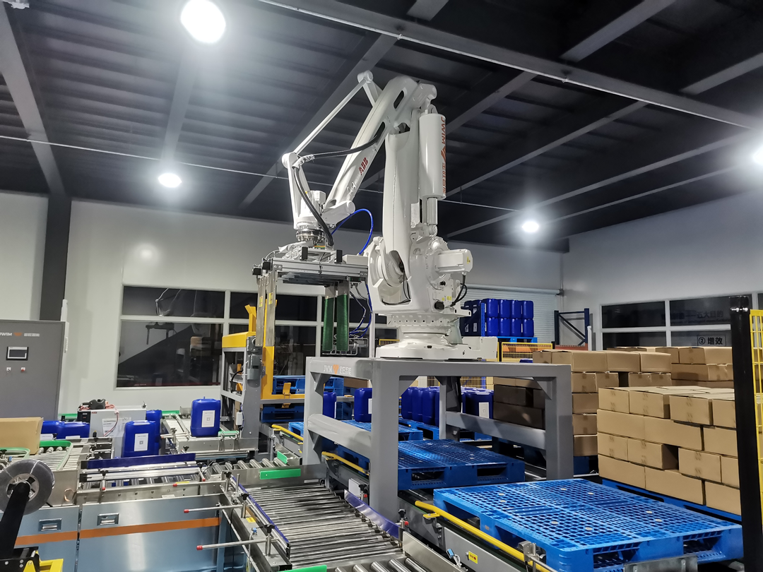 2020年, 金旺研發(fā)了一款全新的智能"KZJ-2AH機(jī)械臂裝箱機(jī)", 該設(shè)備將產(chǎn)線上的瓶子由機(jī)械臂抓取放入箱子內(nèi)實(shí)現(xiàn)全過(guò)程自動(dòng)包裝。基于金旺十幾年的農(nóng)牧二次包裝的技術(shù)沉淀,可根本上保障并實(shí)現(xiàn)抓取系統(tǒng)技術(shù)的應(yīng)用。該設(shè)備在硬件上配備了自主研發(fā)的連桿機(jī)械臂,在軟件上運(yùn)用了歐美先進(jìn)的運(yùn)動(dòng)控制器系統(tǒng),同時(shí)采用了原裝進(jìn)口氣脹抓瓶器,使得整個(gè)動(dòng)作流暢,運(yùn)行準(zhǔn)確。