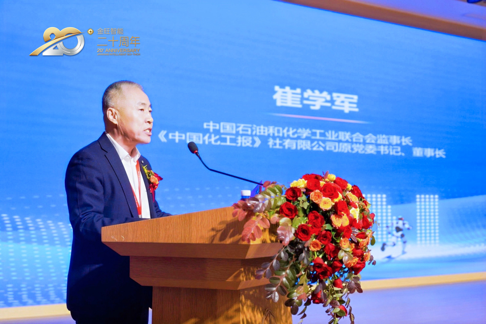 中國石油和化學(xué)工業(yè)聯(lián)合會(huì)監(jiān)事長崔學(xué)軍代表《中國化工報(bào)》發(fā)表熱情洋溢的致辭。他表示,金旺智能二十年創(chuàng)新發(fā)展,為農(nóng)化制劑行業(yè)樹立了很好的標(biāo)桿。作為農(nóng)化制劑行業(yè)智能制造的引領(lǐng)者,金旺智能始終專注創(chuàng)新驅(qū)動(dòng),探索人形機(jī)器人等數(shù)字技術(shù),加快打造農(nóng)化制劑無人化工廠,正在用實(shí)力詮釋"未來工廠"。