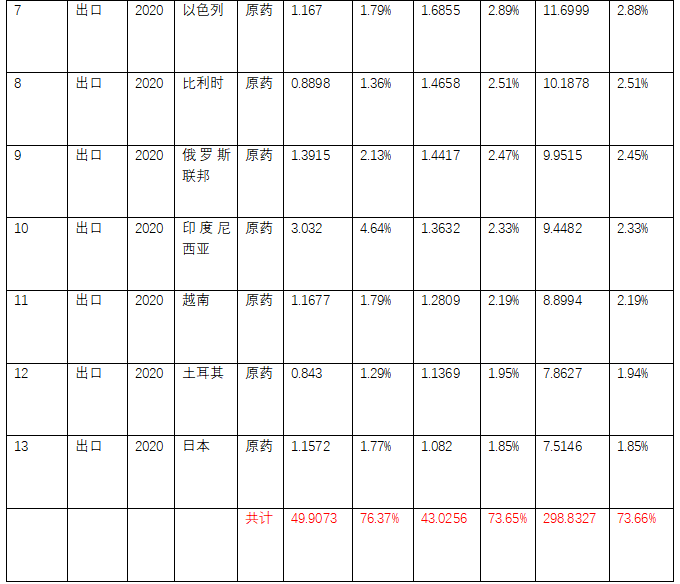 表12 近3年農(nóng)藥原藥制劑出口情況
