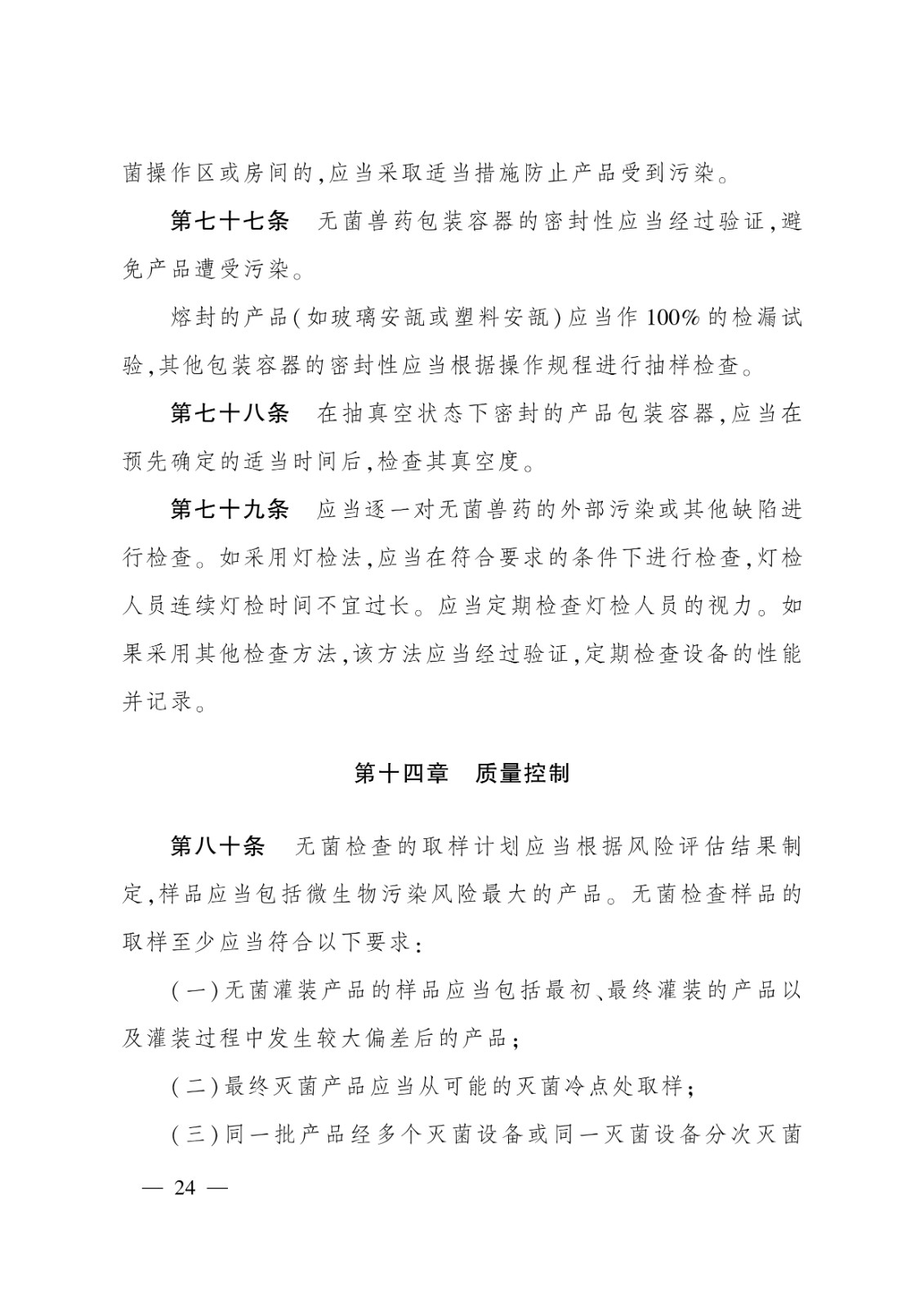 無菌獸藥生產(chǎn)質(zhì)量管理的特殊要求;2.非無菌獸藥生產(chǎn)質(zhì)量管理的特殊要求;3.獸用生物制品生產(chǎn)質(zhì)量管理的特殊要求;4.原料藥生產(chǎn)質(zhì)量管理的特殊要求;5.中藥制劑生產(chǎn)質(zhì)量管理的特殊要求