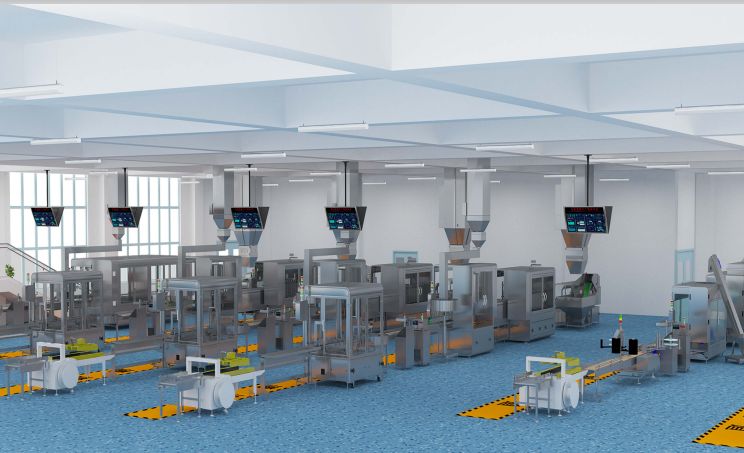 本次項(xiàng)目由兩個(gè)車間組成,其中201車間包含6條智能化生產(chǎn)線分別是:1條20-50ml瓶裝線,3條50-1000ml高粘度瓶裝線,2條5-30L大桶線;202車間舊線改造增加的設(shè)備分別是:自動(dòng)下瓶、下蓋斗,全自動(dòng)理瓶機(jī)和回轉(zhuǎn)式緩沖臺(tái)。